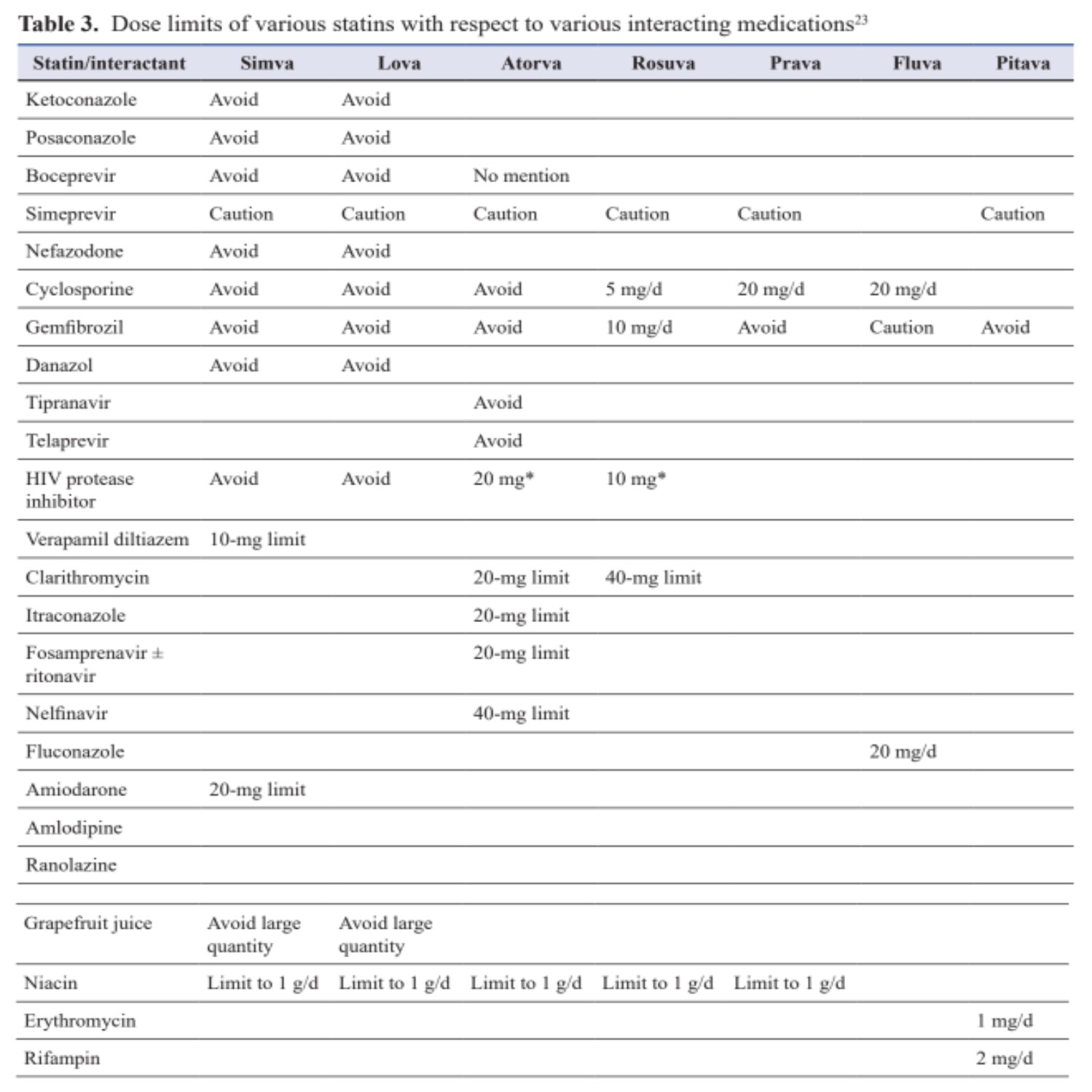 25. Kellick KA, Bottorff M, Toth PP. The National Lipid Association’s Safety Task Force. A clinician’s guide to statin drug-drug interaction. J Clin Lipidol. 2014;8(3 Suppl):S30-46.